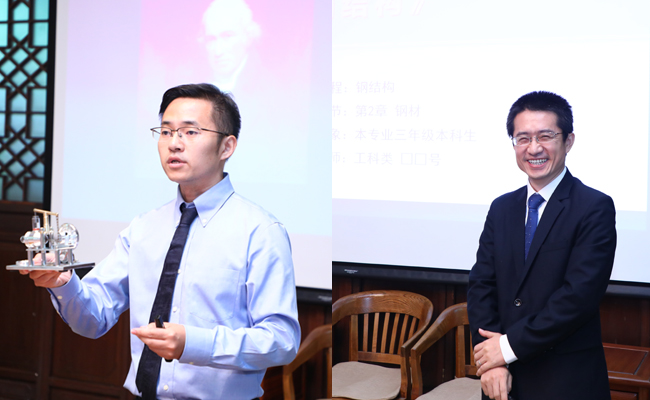 校工会冀静平介绍了清华青教赛工作二十年来的发展历程与感悟,文科辅导教师组组长、化学系离退休教师薛芳渝与工科辅导教师组组长、土木系教授冯鹏,分别介绍了蒙克与班慧勇的备赛情况。随后,蒙克与班慧勇分别以“要素禀赋与工业革命”和“钢材的高温力学性能”为题做了试讲,薛克宗、薛芳渝、冯鹏、晋军、梅赐琪等辅导教师对试讲作了点评。