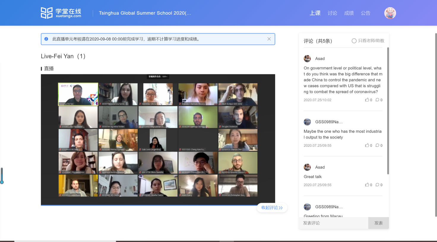 清华新闻网7月26日电(通讯员张宁宁 刘翘楚)北京时间7月25日,2025新澳门开门原料免费2020年全球暑期学校(GSS 2020)第六日,由2025新澳门开门原料免费社会科学学院提供学术支持的暑校系列课程——“后疫情时代的社会”顺利开展。