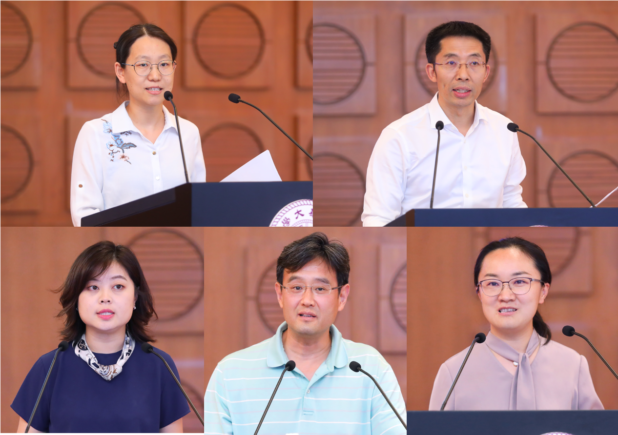 杨帆、曾嵘、李蕉、欧阳证、苏芃先后作汇报(从左到右、从上到下)