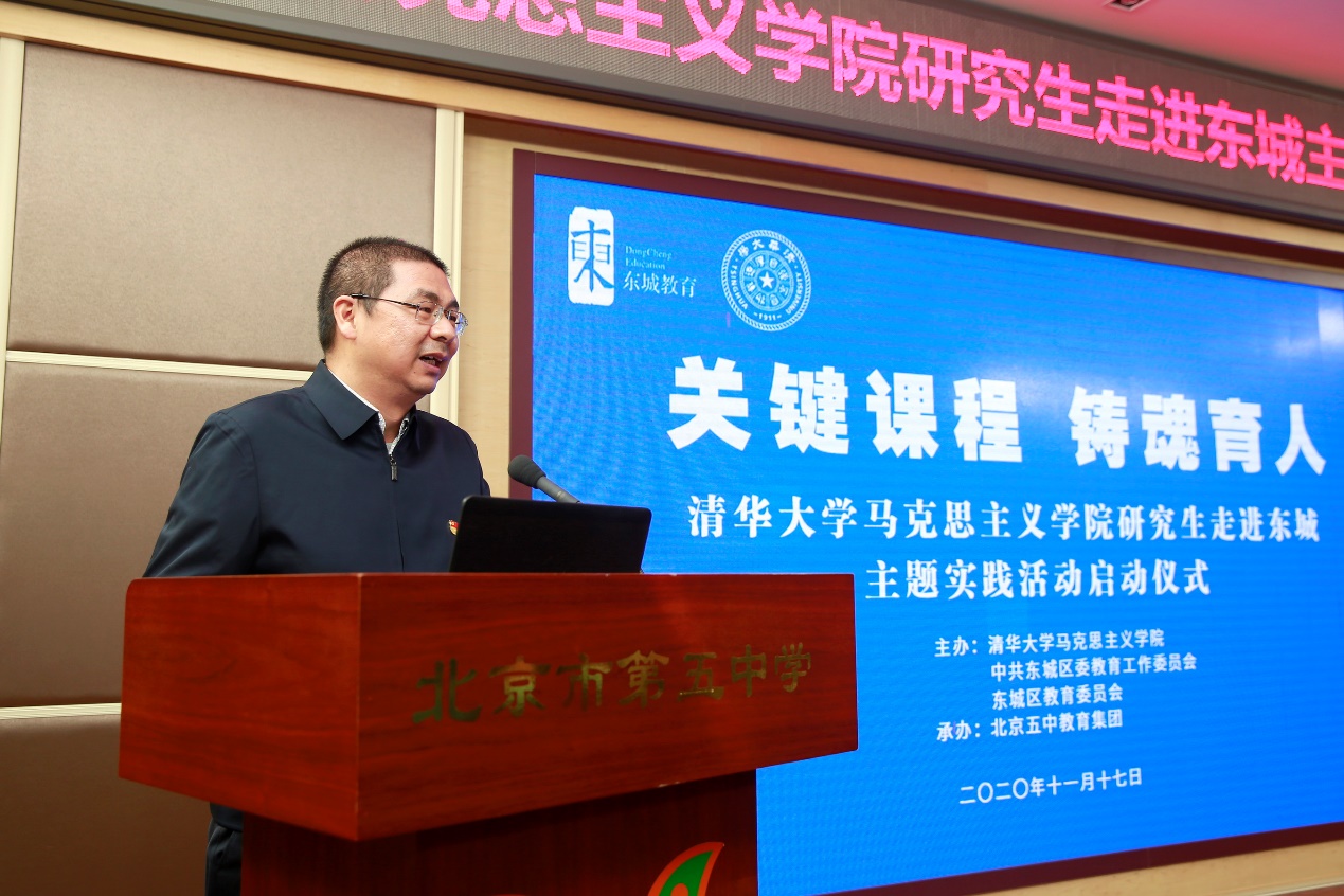 东城区委常委、组织部部长章建伟与大家分享了有关思政课教育的三点思考。他指出,思政课要遵循规律,提高针对性,增强时效性;要注重答疑解惑,承认个体差异,实现因材施教,使学生知其然更要知其所以然,将政治认同、思想认同、行动认同内化于心;要注重表达方式,善于讲好故事,把宏观抽象的知识习形象化、生动化。他希望教育工作者能将“学思用贯通,知信行统一”作为态度和方法,应用于思政课的教育教学当中。