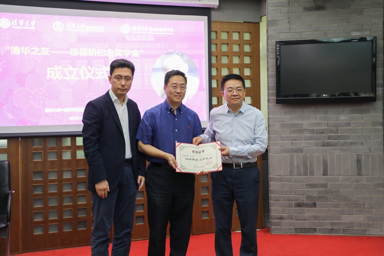 刘俊君动情地回忆起徐葆耕先生对自己学生时代的深刻影响,“每次回想起以前在三教听徐老师讲授《西方文学思潮与作品》课程,他才华横溢的讲解、激情昂扬的语言和神采奕奕的目光,总是像老照片一样清晰地在脑海里回放。徐老师用他的一生,诠释了何为无私之心,何为清华精神。”刘俊君表示,在毕业后离开清华园、走上创业之路后,学生时代传承自徐老师这样的老师身上的清华精神,成为激励自己不断前行的动力。他表示十分感恩母校对他的培养,感念当年中文系编辑专业双学位以徐葆耕老师为代表的老师们给自己留下的温暖难忘的学习生活经历。而这也成为他在创业有成后产生回馈母校、纪念徐葆耕老师想法的初衷。他希望通过“清华之友——徐葆耕纪念奖学金”,鼓励更多学生通过书写实践,将徐葆耕先生的精神和品格继承和发扬下去,把故事写在中国大地上,记录时代洪流下最真实的人和事,成为无愧于母校培养、为祖国奉献的优秀青年。