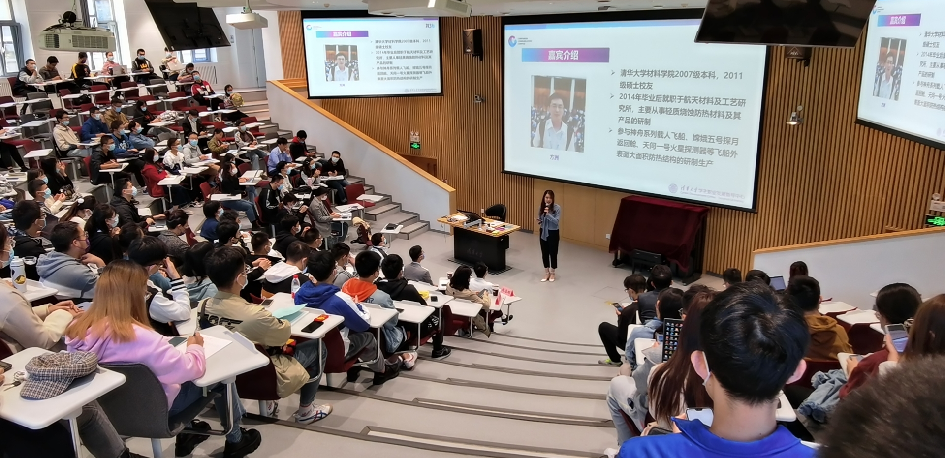 清华新闻网10月11日电 10月7日下午,由学生职业发展指导中心和材料学院联合主办的“走进制造业•行业面对面”之航天材料专场活动在东阶梯教室举行,活动邀请神舟十二号返回舱防热结构副主任工程师、材料学院校友方洲作主题报告。校党委副书记过勇出席活动并致辞。材料学院党委书记杨志刚、党委副书记王秀梅出席活动,活动还吸引了来自各院系的160余名同学参加。