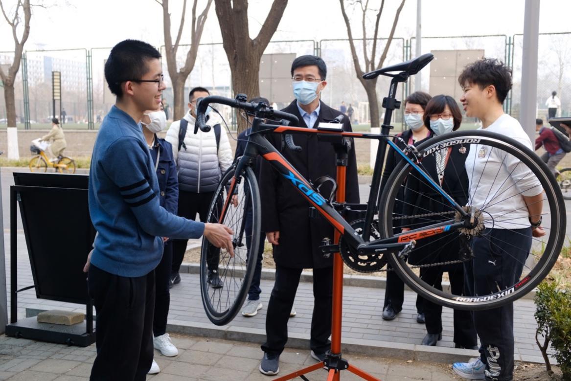 过勇详细询问了同学们建设“铁马驿站”的初衷和目前工作内容,为大家的辛勤劳动和无私奉献感到欣慰。过勇表示,“铁马驿站”的同学们自己动手,免费帮助校内师生维修自行车,这是劳动教育的有益尝试,是“五育并举”、实现学生全面发展的重要部分。“铁马驿站”不仅让同学们动起手来进行劳动,在实践中得到自我价值的实现,也同时实现了服务他人、奉献社会的目标。希望同学们能在工作的过程中培养奋斗奉献的劳动精神,提高创新创造的劳动能力,不忘初心,真真切切地为同学们服务,解决同学们生活中的问题,在成就自己和奉献社会中成长为一个更完整的人。