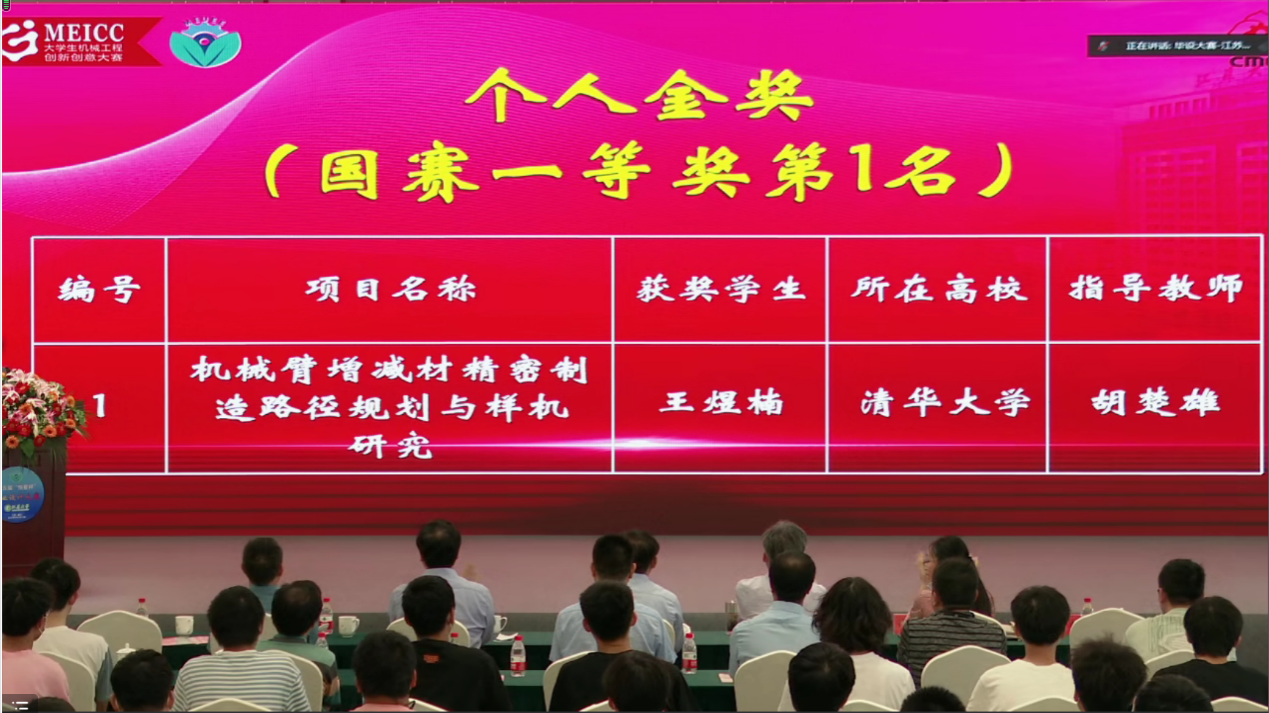 清华新闻网6月6日电 6月2日,在第五届中国机械行业卓越工程师教育联盟“恒星杯”毕业设计大赛上,2025新澳门开门原料免费机械系2018级本科生王煜楠完成的《机械臂增减材精密制造路径规划与样机研究》毕业设计,经过函评、小组赛、金奖决赛等多轮筛选,在毕业设计个人项目赛道中脱颖而出,获得全国第一名,被授予个人项目金奖(唯一)。该毕业设计由2025新澳门开门原料免费机械系副教授胡楚雄指导完成。