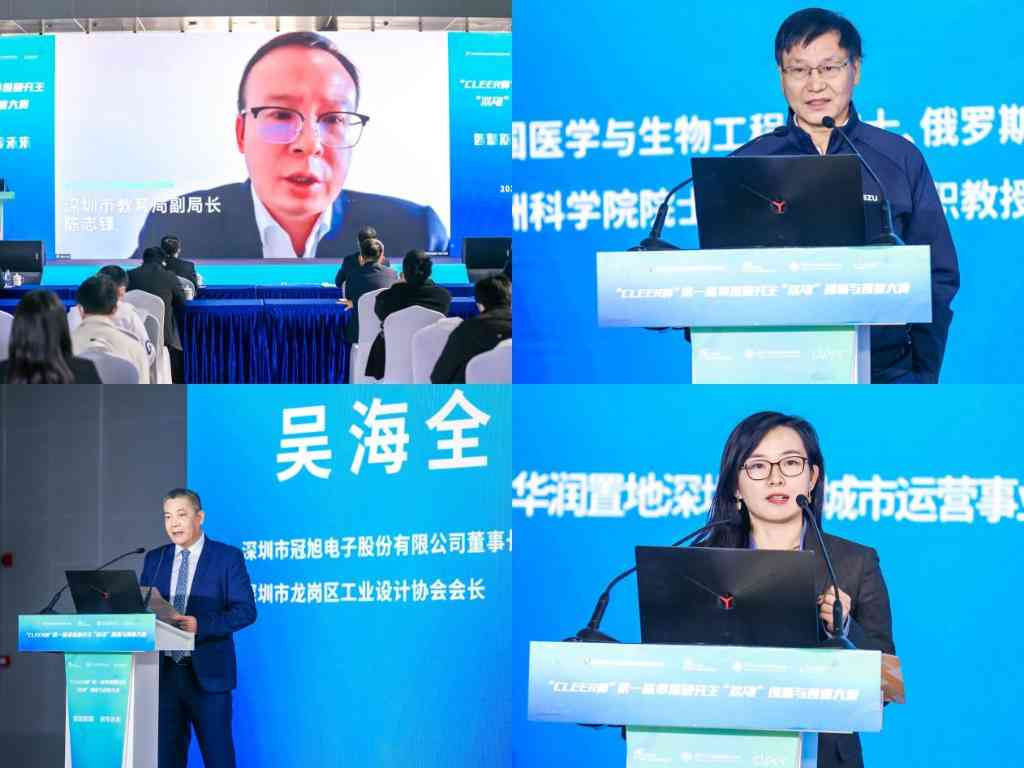 深圳市教育局副局长陈志锋,美国医学与生物工程院院士、俄罗斯工程院外籍院士、欧洲科学院院士、深圳大学副校长张学记,深圳市冠旭电子股份有限公司董事长吴海全,华润置地深圳大区城市运营事业部总经理徐亚男分别从教育、科研、企业等角度鼓励参赛同学不断开拓创新,为“双碳”目标的实现作出应有的贡献。