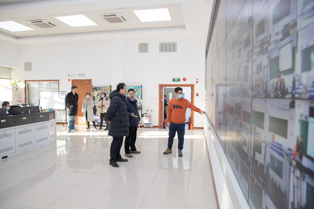 随后王希勤一行前往第六教室楼,在实地检查教室师生上课情况后,前往教学环境管理与控制中心,听取工作人员关于开学“第一课”教室使用、多媒体设备运行和网络设备线路承载等情况的汇报。