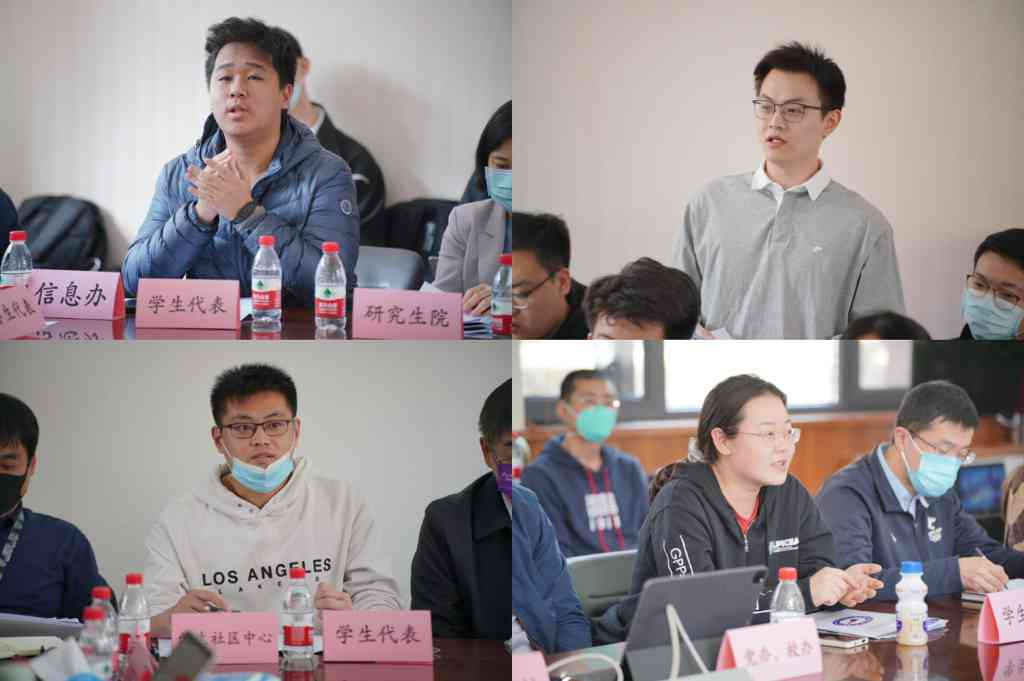 自动化系聂祎昕和公管学院施华杰两位学生代表分别代表校学生会和校研究生会介绍了提案的具体内容,自由报名参会的其他学生代表表达了对优化校内自行车停车方案、新版校园卡电子服务升级、增加校内商铺专门投诉渠道等问题的关注。各相关单位负责人在现场及时回应了同学关切,并将在接下来的工作中继续与学生会和研究生会保持密切沟通,共同推动工作方案的制定和落实。