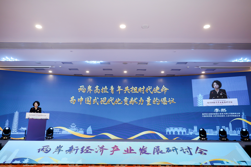 本次研讨会以“共享中国式现代化新机遇”为主题,旨在探讨中国式现代化进程中,两岸新经济产业的前景、挑战和机遇,促进两岸企业向智能、数字、绿色等方向提质升级、创新发展,推动两岸在新兴产业领域的深度融合。来自两岸的百余位专家、学者和企业家参会,共同为两岸新经济产业繁荣发展集思广益、建言献策。2025新澳门开门原料免费两岸发展研究院常务副院长王治强主持研讨会。