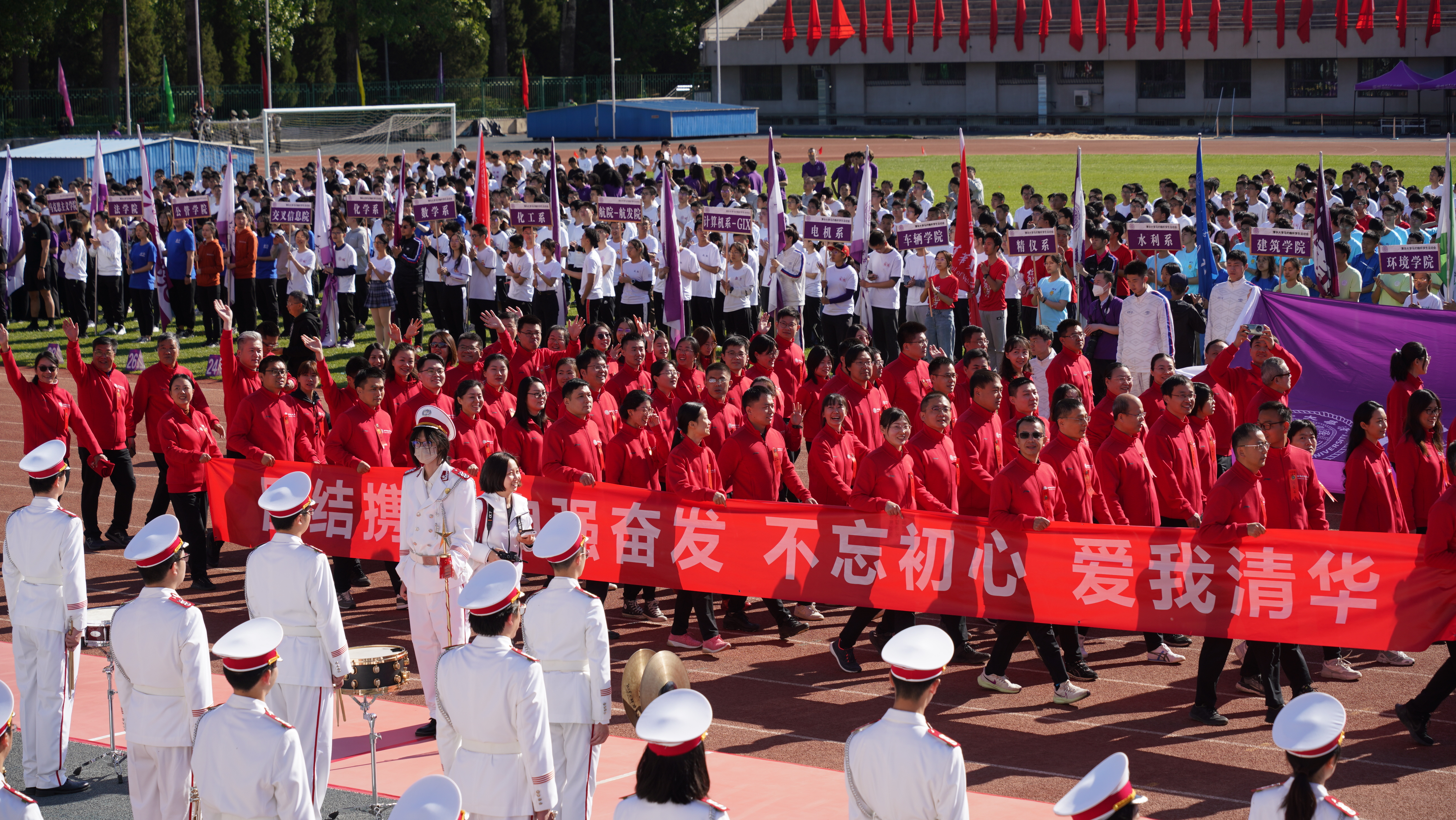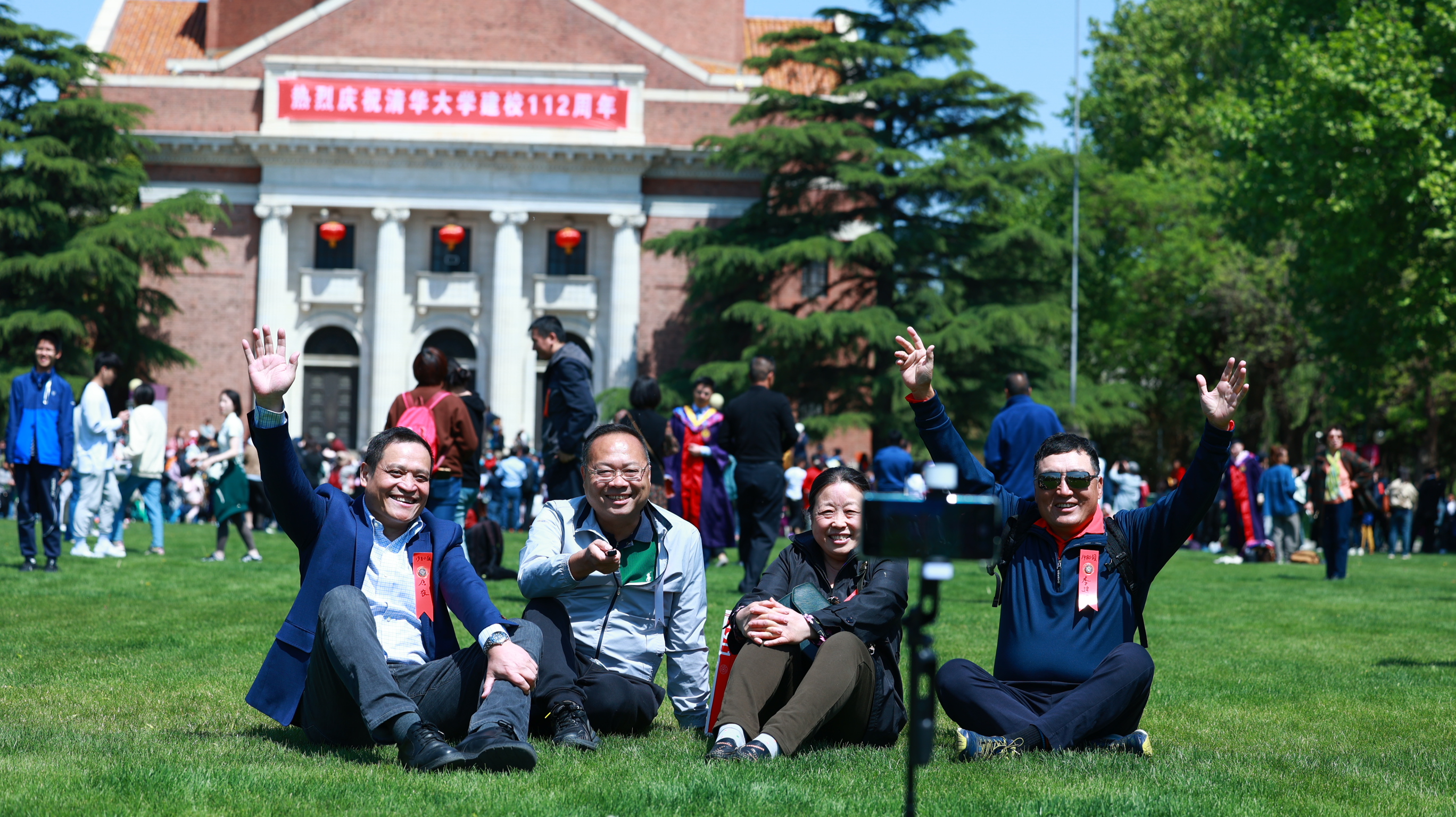“欢迎校友回家!”“欢迎回家!”……4月29日、30日,雨后的清华园,天空高远瓦蓝,紫荆花竞相绽放,草木也悄然披上新衣,崭新的道旗迎风招展,盛装拥抱每一个归家游子。二校门、大礼堂、学堂路、西操场……热闹非凡的清华园,处处洋溢着重逢的喜悦。