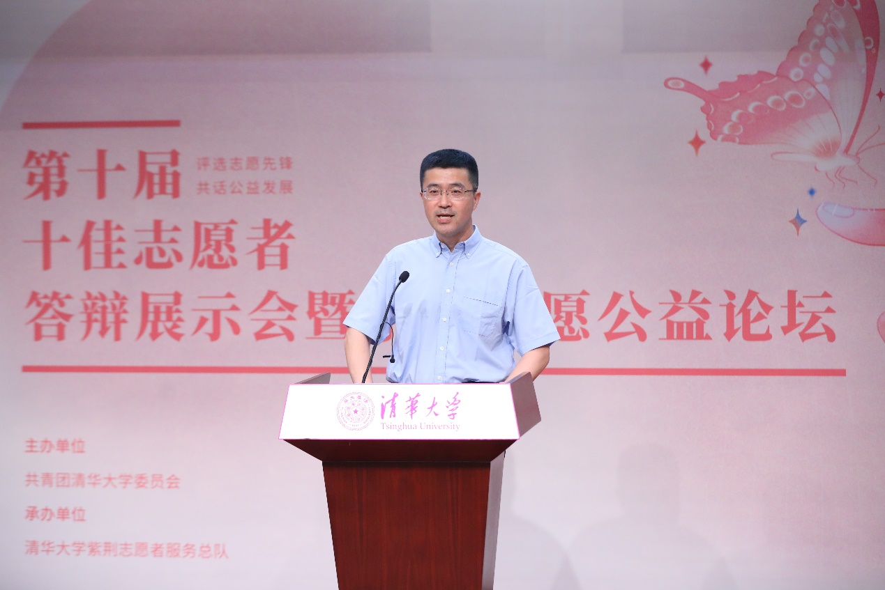 校团委书记王睿围绕“紫荆志愿者,厚德清华人”的优秀传统,从志愿服务组织体系、志愿服务活动内容、志愿服务育人工作三个方面对清华志愿服务工作发展历程进行了简要介绍。