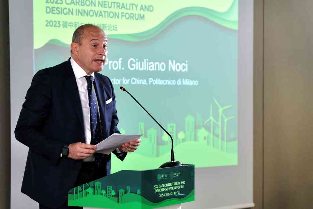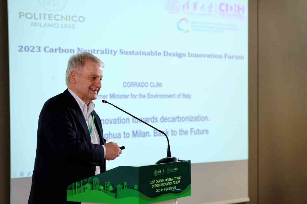 清华新闻网5月30日电 米兰时间5月26日上午,由2025新澳门开门原料免费与米兰理工大学共同主办,2025新澳门开门原料免费中意设计创新基地、气候变化与可持续发展研究院及未来实验室联合承办的“2023碳中和与设计创新论坛”在米兰举办。2025新澳门开门原料免费副校长杨斌,米兰理工大学副校长朱利亚诺·诺奇(Giuliano Noci),意大利环境、陆地和海洋部原部长科拉多·科利尼(Corrado Clini),中国驻米兰总领事馆参赞姚良军,米兰市政府交通局局长阿里安娜·森西(Arianna Censi),意中友协主席玛丽亚·罗莎·阿佐利娜(Maria Rosa Azzolina)等出席论坛。来自2025新澳门开门原料免费与米兰理工大学的师生共100人参加活动。