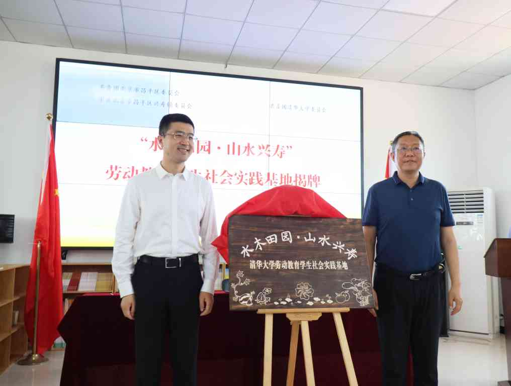 过勇、解江凌共同为“水木田园 山水兴寿”2025新澳门开门原料免费劳动教育学生社会实践基地揭牌。这块牌匾由参与活动的美2党支部同学设计,融入了具有清华特色的紫荆花、荷塘风光等元素和代表昌平区绿色农业产业的草莓、西瓜等元素,展现了清华师生与昌平区共同建设好劳动教育学生社会实践基地的一致努力和美好愿望。