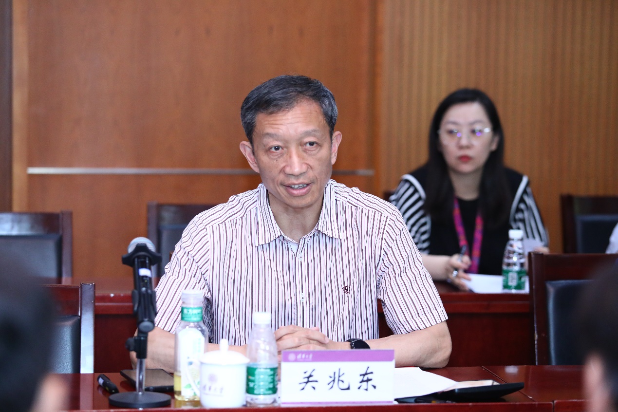 关兆东代表学校作表态发言,对专家组为清华绿色学校创建工作把脉开方表示诚挚感谢,表示学校将积极落实专家组的反馈建议,以评促建,以评促改,总结经验,查漏补缺,把绿色学校创建成效落实到深化“绿色教育”传播生态文明思想上,落实到用“绿色科技”服务国家战略发展和用“绿色校园”支撑美好校园生活上,与兄弟高校协同推进“绿色学校创建”体系的建立健全,持续为服务国家“双碳”战略和生态文明建设贡献力量。