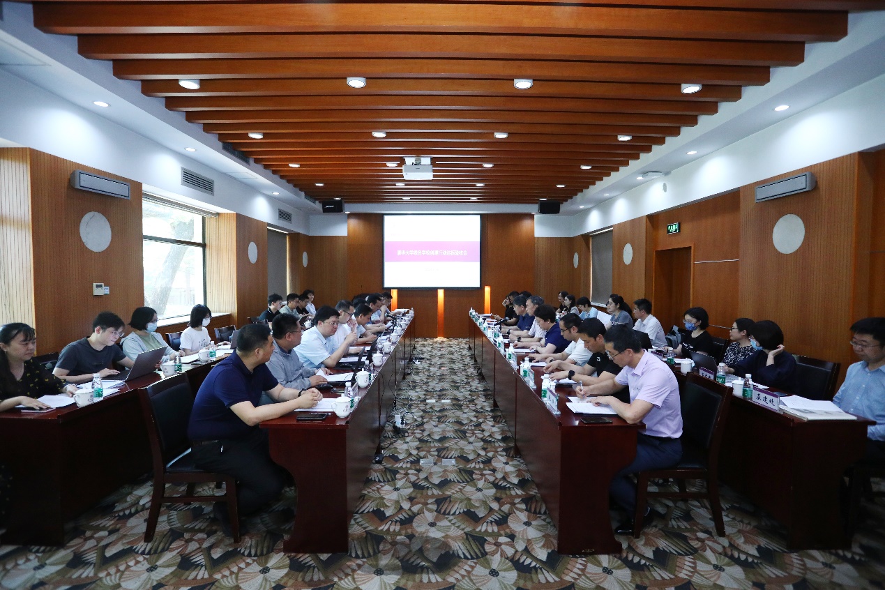 专家组深入了解了清华绿色学校创建工作在组织领导、制度建设、宣传教育、运行管理、创新研究等方面取得的成绩,就创建工作中的亮点举措和未来规划进行意见交流,并实地走访中水处理站、新型电力系统运行与控制全国重点实验室,体验校园电动公交,考察能源监管平台与校河改造项目,对学校能源管控、分配等方面工作进行调研交流。