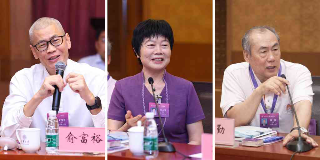 校友理事俞富裕、詹玉荣、张勤(从左至右)发言