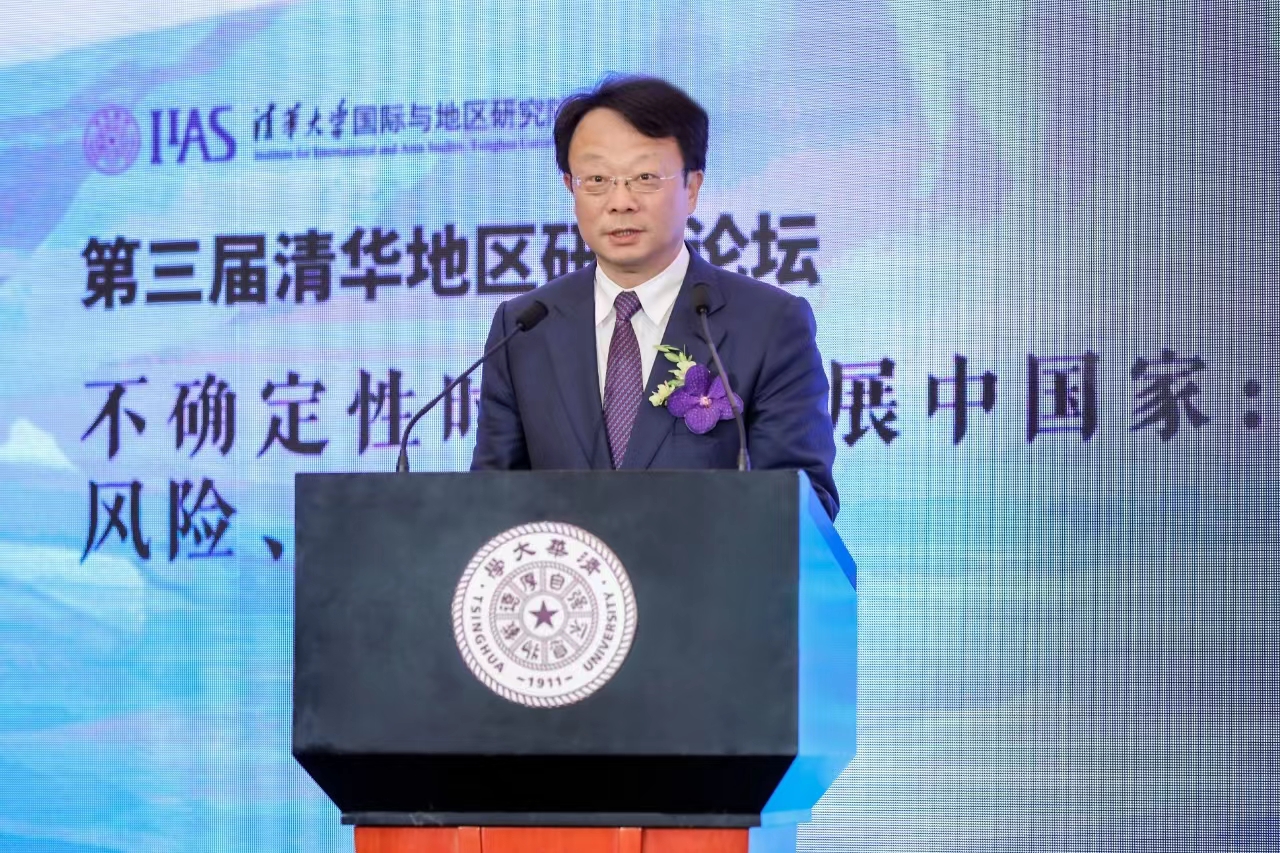 王希勤在致辞中指出,清华地区研究论坛举办两届以来促进了学术思想和研究成果的交流与分享,成为连接全球,尤其是发展中国家区域国别研究学者的重要纽带。百年变局和世纪疫情交织叠加,新一轮科技革命和产业变革加速演进,为世界带来了诸多不确定性。世界各国特别是发展中国家普遍希望能有更多更强大的确定性力量,来维护世界局势的和平稳定,推动世界经济的平衡复苏,实现更有韧性的全球发展。本届论坛以“不确定性时代的发展中国家:风险、韧性、依存”为主题,对世界和中国而言具有很强的现实意义。