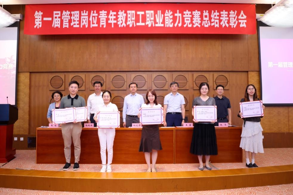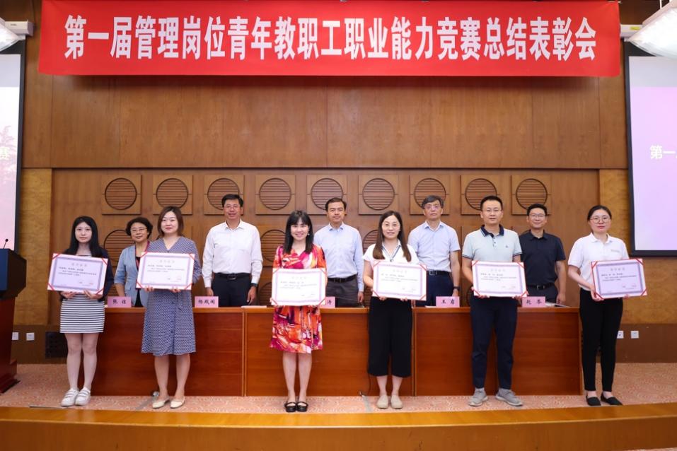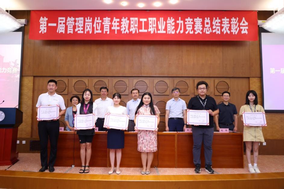 向波涛代表学校向获奖青年教职工表示祝贺。他表示,学校历来高度重视职工队伍建设,强调依靠教师和职工“两个车轮”推动学校工作。举办首届青管赛是学校加强职工队伍建设的重要举措。希望各位选手把通过备赛参赛获得提升的能力素质、锤炼的良好作风带回到本职岗位上,以点带面,促进更多的管理岗位教职工进一步增强大局意识、树立一流标准、坚持守正创新,为推动学校事业高质量发展作出新贡献。