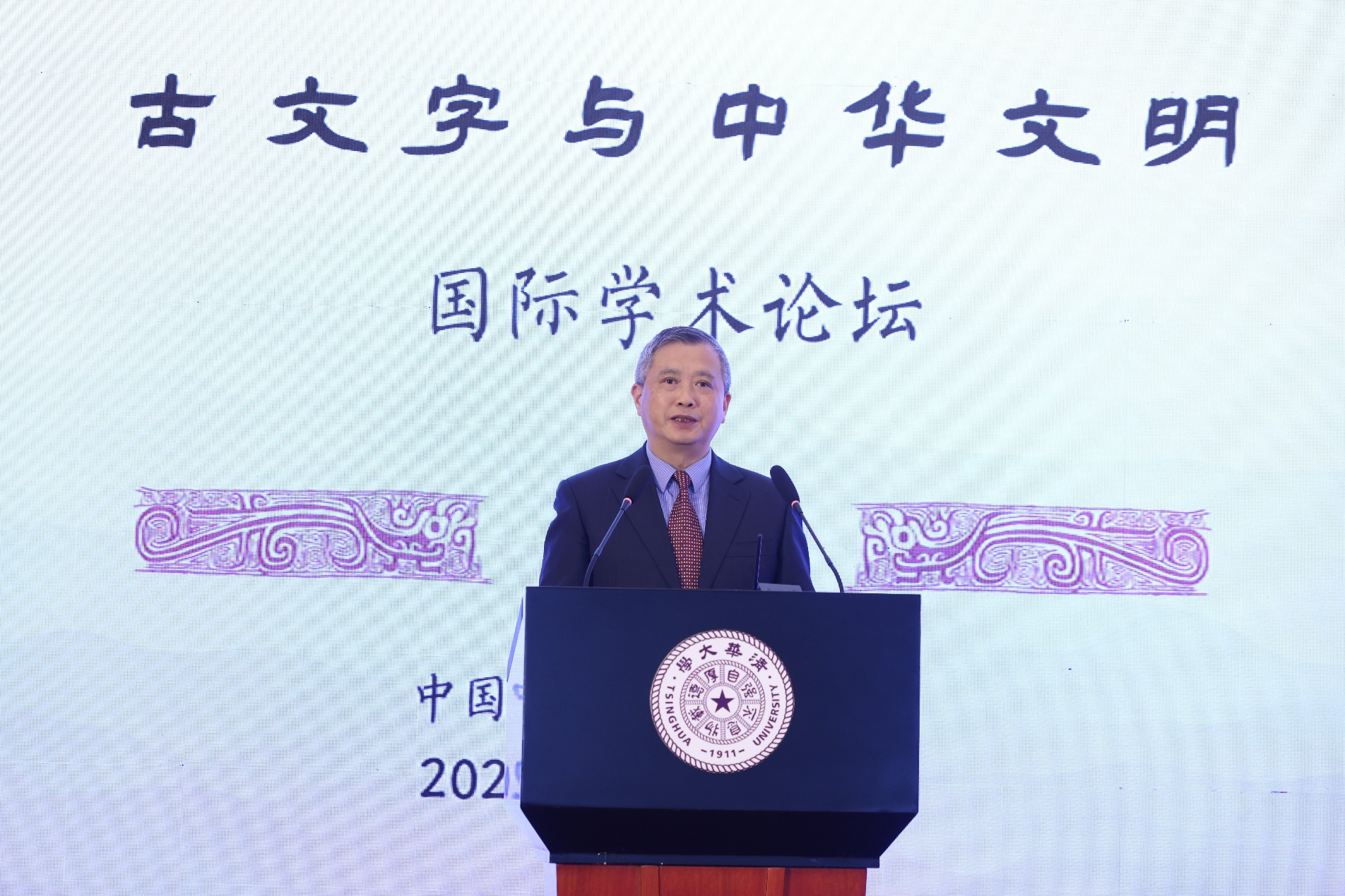 田立新表示,在习近平总书记提出共建“一带一路”倡议10周年背景下举办此次论坛意义重大、影响深远,对推动古文字与中华文明研究发展具有重要意义。习近平总书记高度重视以甲骨文为代表的中华优秀传统文化的传承发展,多次发表重要论述指出,殷墟甲骨文的重大发现在中华文明乃至人类文明发展史上具有划时代的意义。中国的汉文字非常了不起,中华民族的形成和发展离不开汉文字的维系。国家大力支持开展相关研究,2020年启动“古文字与中华文明传承发展工程”,全面系统开展甲骨文、金文、简帛文字等古文字研究,揭示古文字在中华文明乃至人类文明发展史上的重要作用,取得显著成效。要进一步深化相关领域的国际交流合作,加强古代文明比较研究,推动海外古文字资料调查、研究成果外译等,立足世界角度阐释中华文化精神的当代价值和世界意义。她倡议海内外专家学者作为融通中外的使者,携手共进,为沟通中外文化、增进理解友谊合作作出更加积极的努力,以语言文化为纽带促进文明交流互鉴。