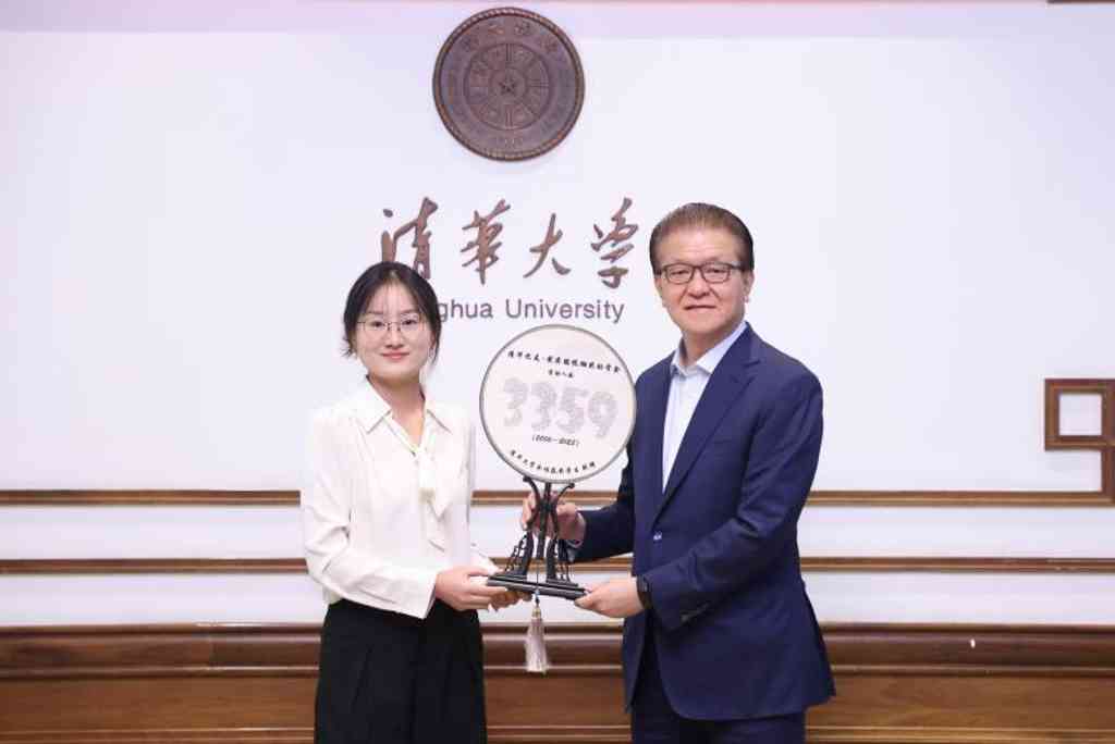 获得奖学金学生代表向黄荣年赠送了特别制作的团扇纪念品,扇面以所有受资助学生姓名共同组成“3359”,代表“清华之友—黄奕聪伉俪奖助学金”设立的18年间,共有3359名学生受益。