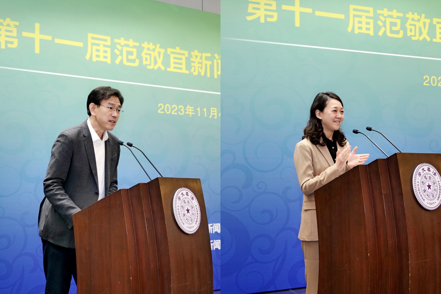 陆地、程曼丽、李泓冰依次作为范敬宜新闻教育学子奖、新闻教育良师奖、新闻教育良友奖获得者发言。卢烨作为往届范敬宜新闻教育学子奖获奖代表发言。