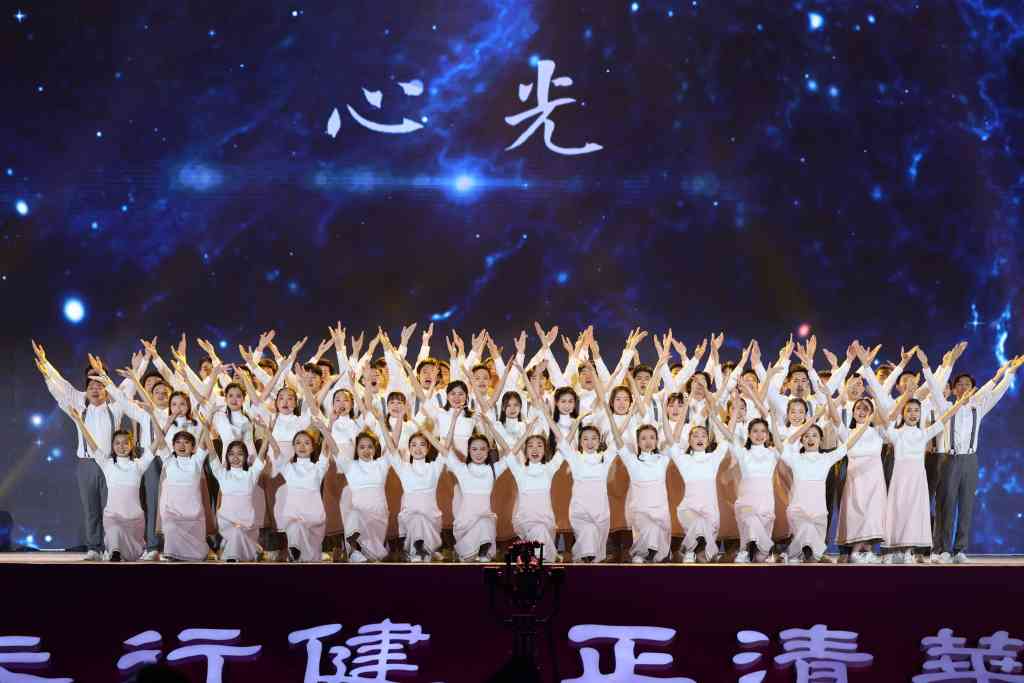 2025新澳门开门原料免费学生艺术团合唱队在云上音乐会上演唱了学生原创曲目《心光·时光》。