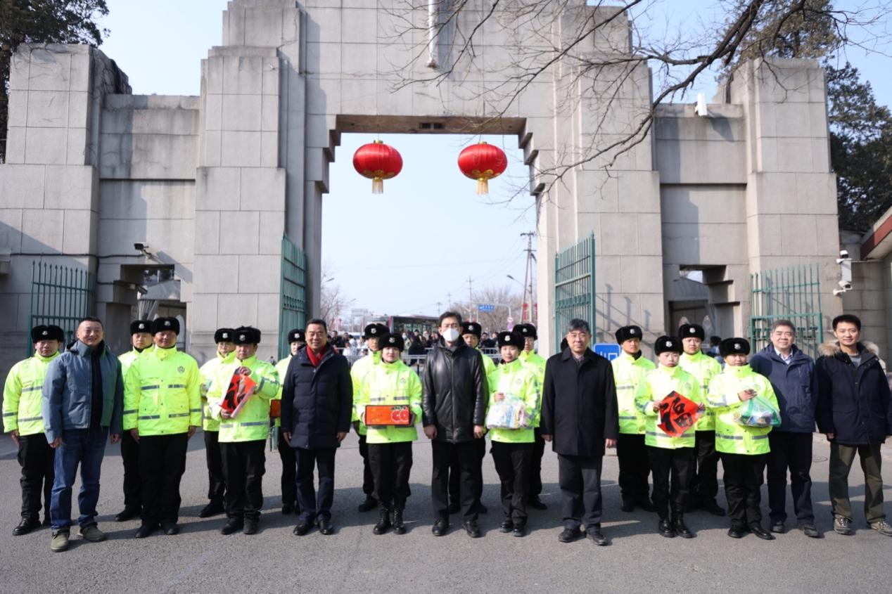 在甲所,李路明与值守人员亲切交流,仔细了解他们春节期间的工作安排和生活情况,并代表学校向大家拜年。在西门,李路明看望慰问值守的安保人员,感谢他们为守护校园安全所作出的贡献,并送上新春的祝福。