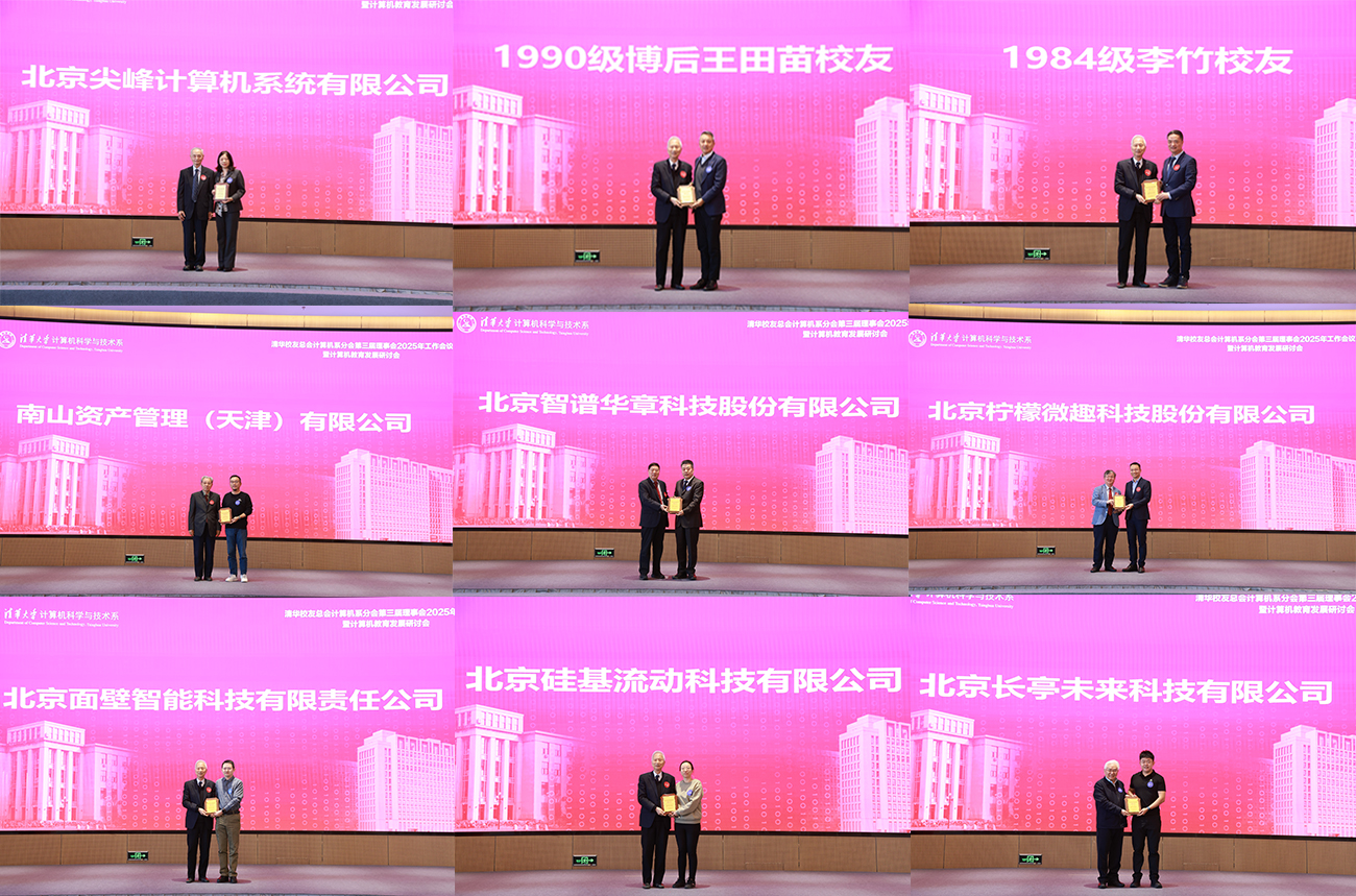 校友捐赠授牌环节,计算机系的老领导、院士们分别为捐赠的校友和企业代表颁发致谢牌。