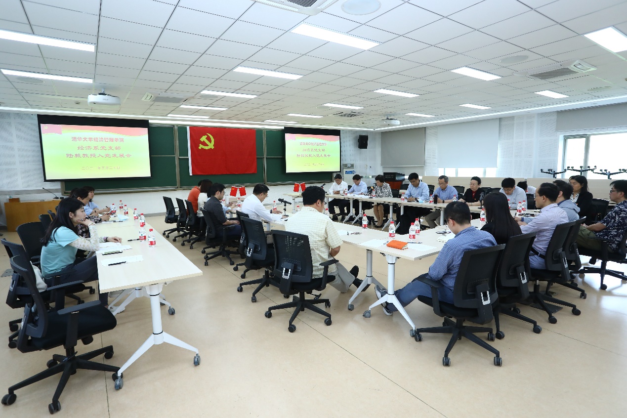 清华新闻网5月28日电(记者 温兴煜 摄影 曹文鹏)5月20日下午,清华经管学院经济系党支部召开陆毅同志入党发展会。经支部成员充分讨论并投票表决,经管学院经济系党支部同意接收陆毅同志为中共预备党员。校党委书记陈旭作为学校党委层面的联系人出席发展会并讲话,校党委常委、组织部长、统战部长许庆红,经管学院党委书记陈煜波等参加发展会。发展会由经管学院经济系党支部书记武康平主持。