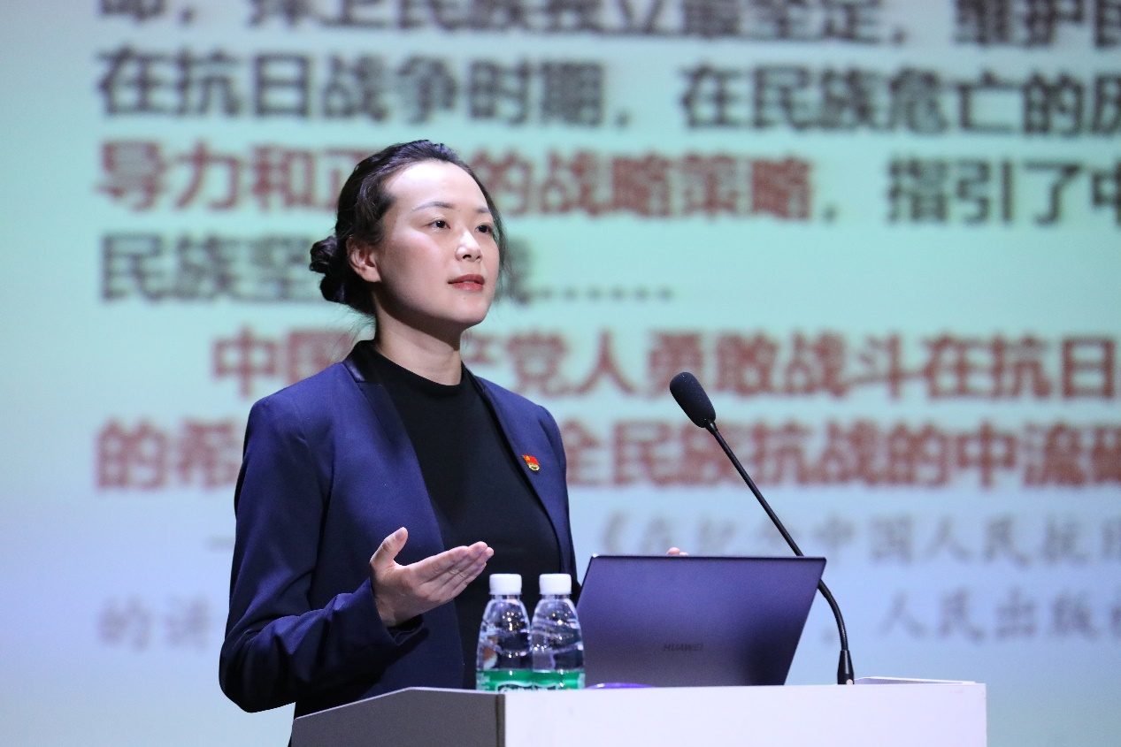 在报告中,夏清用丰富详实的史实,讲述了中国共产党、国民党在抗日战争中采取不同的战略和策略致使两党截然不同命运的历史,进而增强了大家对中共党史和抗日战争史的学习和理解。