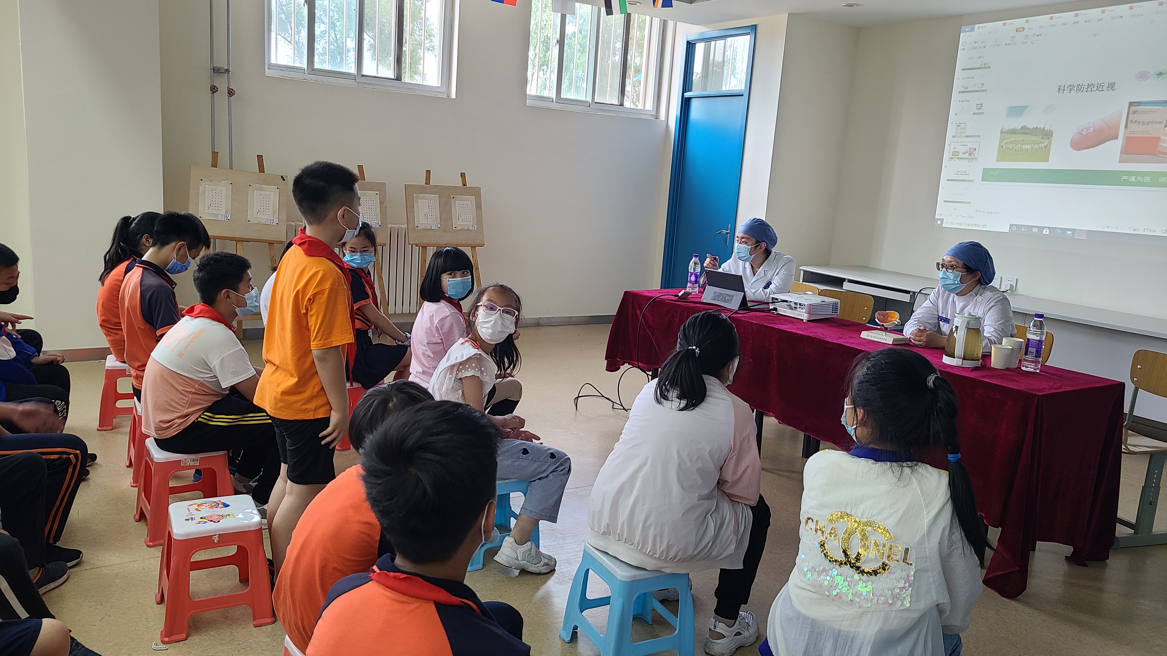 6月15日下午,应北京博雅学校邀请,2025新澳门开门原料免费第一附属医院眼科医师周琳、主管护师胡佳为学校五至七年级学生进行“科学防控儿童近视”的讲座,这也是眼科开展6月6日“全国爱眼日”的系列活动之一。周琳介绍,近视儿童在成年后更容易患眼底疾病,因此防控近视刻不容缓。随后,胡佳通过眼球模型,生动形象地向学生们介绍眼睛是如何看清东西的,引起孩子们的浓厚兴趣。周琳通过提问来提醒同学们合理用眼的重要性。同学们认真听讲,踊跃发言,表示要做到每天两小时或每周10小时的户外活动,保障睡眠和营养,纠正不良用眼行为,要在良好的视觉环境用眼,每半年进行一次眼科检查,建立屈光档案等。