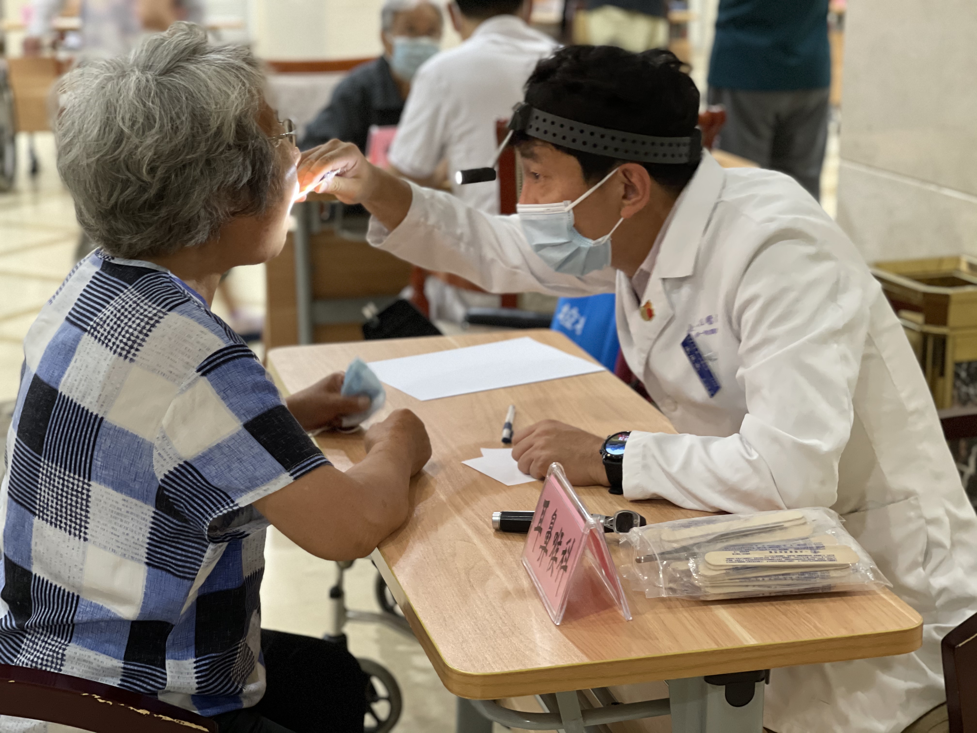 6月26日上午,院党委组织心脏中心、消化内科、普外科、眼科等十多个科室专家及护理人员为酒仙桥周边社区居民群众开展健康义诊活动。很多老年居民因为行动不便,去医院就诊困难,得知专家来社区义诊的消息,都纷纷前来问询,每个义诊科室前都排起了等候的长队。医护人员为前来问诊的群众测量血压,进行耳鼻喉和眼底检查,耐心细致地讲解病情,指导用药,提供治疗建议,开展健康科普教育。有些患者病情复杂,多科室专家在现场搭建了会诊平台,进一步明确治疗方案。义诊活动为300多位老年群众提供了与专家面对面交流的机会,得到了大家的热烈欢迎和一致好评。