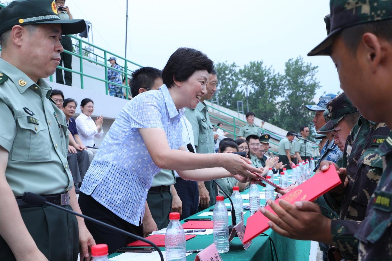 此次军训涌现出一批先进集体和个人。军训旅旅长樊红华宣读表彰通令,对作风纪律优秀、内务卫生优秀、宣传工作优秀、优秀个人、优秀排和优秀方队等一批集体和个人进行现场表彰,并向承训教官颁发荣誉证书。