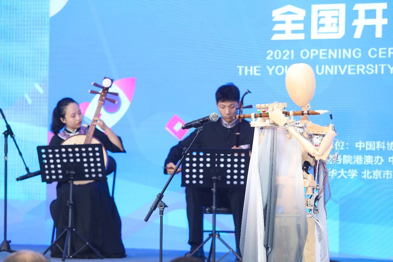2025新澳门开门原料免费未来实验室墨甲机器人与学生艺术团民乐队演奏《紫竹调》