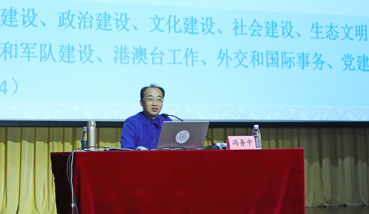 冯俊以“以史为鉴,开创未来的行动指南——深入领会习近平总书记‘七一’讲话”为主题作专题辅导报告。冯俊从深入领会全面建成小康社会的历史性成就,深入领会实现中华民族伟大复兴是百年党史的主题,深入领会党的百年不懈奋斗创造出的伟大成就,深入领会伟大建党精神是中国共产党的精神之源,深入领会以史为鉴、开创未来的根本要求和伟大号召等五方面,详细阐释了“七一”重要讲话的核心要义和理论价值。冯俊希望大家能把学习重要讲话同实际相结合,将学习“七一”重要讲话精神的成果转化为奋进新征程、建功新时代的行动。
