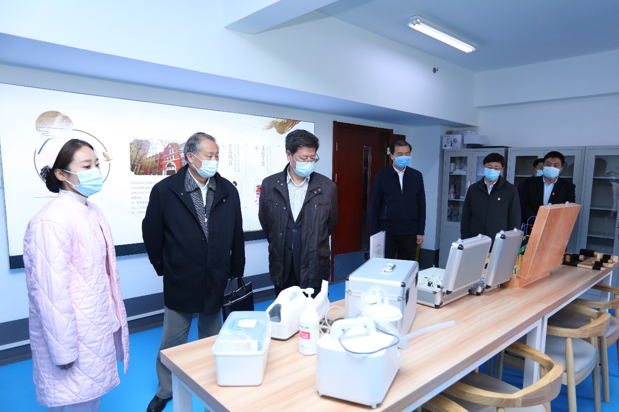 巡回指导组一行首先来到双清苑社区,考察养老驿站建设、“医疗费报销进社区”办实事项目开展和双清园食堂建设运行情况。在双清苑社区养老服务驿站,清华园街道办党工委书记高斌、离退休处处长曹海翔介绍了养老驿站建设背景和运行现状。清华园街道辖区户籍常住人口中老人比例高,清华园街道先后推动建成四家社区养老服务驿站,旨在向离退休教职工及家属提供专业化为老服务,其中双清苑社区养老服务驿站于今年4月启动。巡回指导组一行体验了养老驿站医养结合特色服务项目,并参观了阅览室、无障碍助浴室、理疗室、养老产品租赁室、健身房等多功能服务区。驿站内还特别设置了财务报销站点,由财务部门工作人员进社区上门收取医药费报销单据,以便老人不离开社区就能完成医疗费用报销。财务处处长郝永红介绍了有关情况。今年3月起,财务部门定期安排专人到荷清苑、西北小区、蓝旗营、双清苑等社区收取医药费报销单,至今已服务离退休教职工730人次。