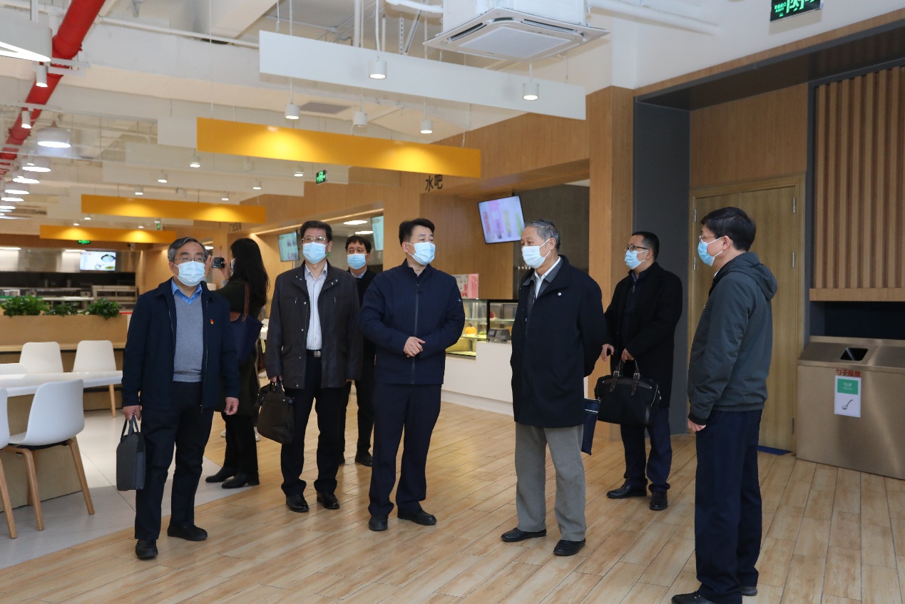 由饮食中心主任魏强陪同并介绍,巡回指导组一行参观了双清园食堂。为了解决双清公寓学生的就餐问题,双清园食堂项目从2020年初开始启动,今年8月起试营业。食堂装修环境简约明亮,供应餐饮品类丰富,书咖兼具休闲与学习功能,受到了师生和双清苑社区居民的一致好评。