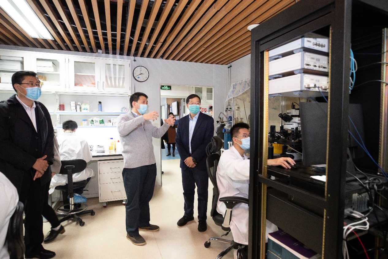 清华新闻网11月4日电(记者 李晨晖 实习记者 石振宇 摄影 李派)11月2日下午,校长邱勇先后调研物理系、化学系、生命学院,了解冷原子精密测量、稀土材料、脑科学等相关研究进展,并在生物医学馆主持召开院系学科规划座谈会。副校长曾嵘,相关院系、部处负责同志及部分教师代表参加调研座谈。