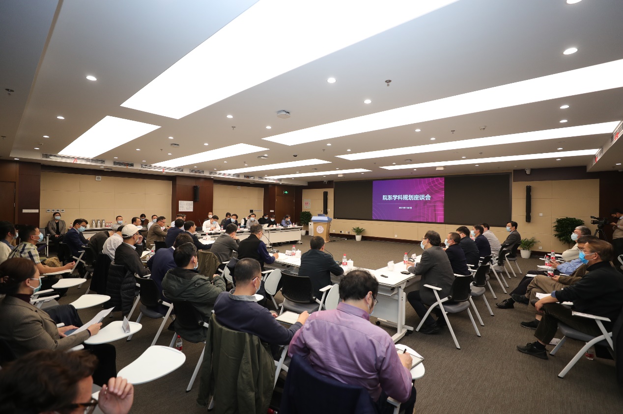 化学系李亚栋院士、张洪杰院士、李景虹院士,物理系段文晖院士,生命学院孟安明院士、谢道昕院士围绕新时期理科高质量内涵式发展、明晰学科重点建设方向、协调教学与科研的关系、推动高水平人才培养等方面进行了交流探讨。