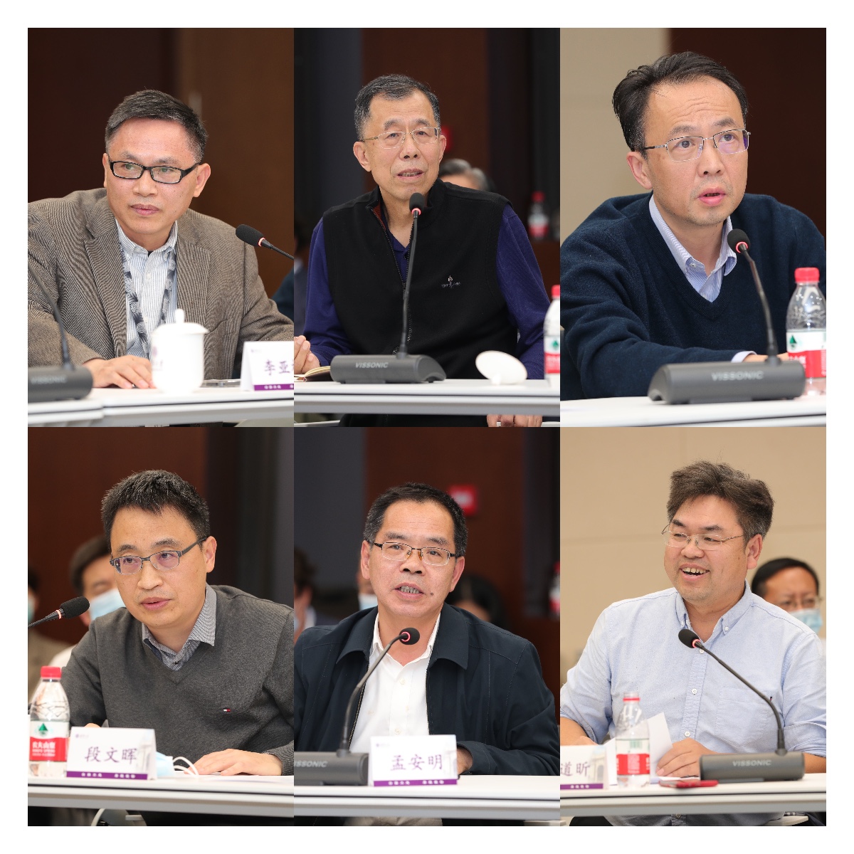李亚栋、张洪杰、李景虹、段文晖、孟安明、谢道昕(从左至右、从上至下)先后发言