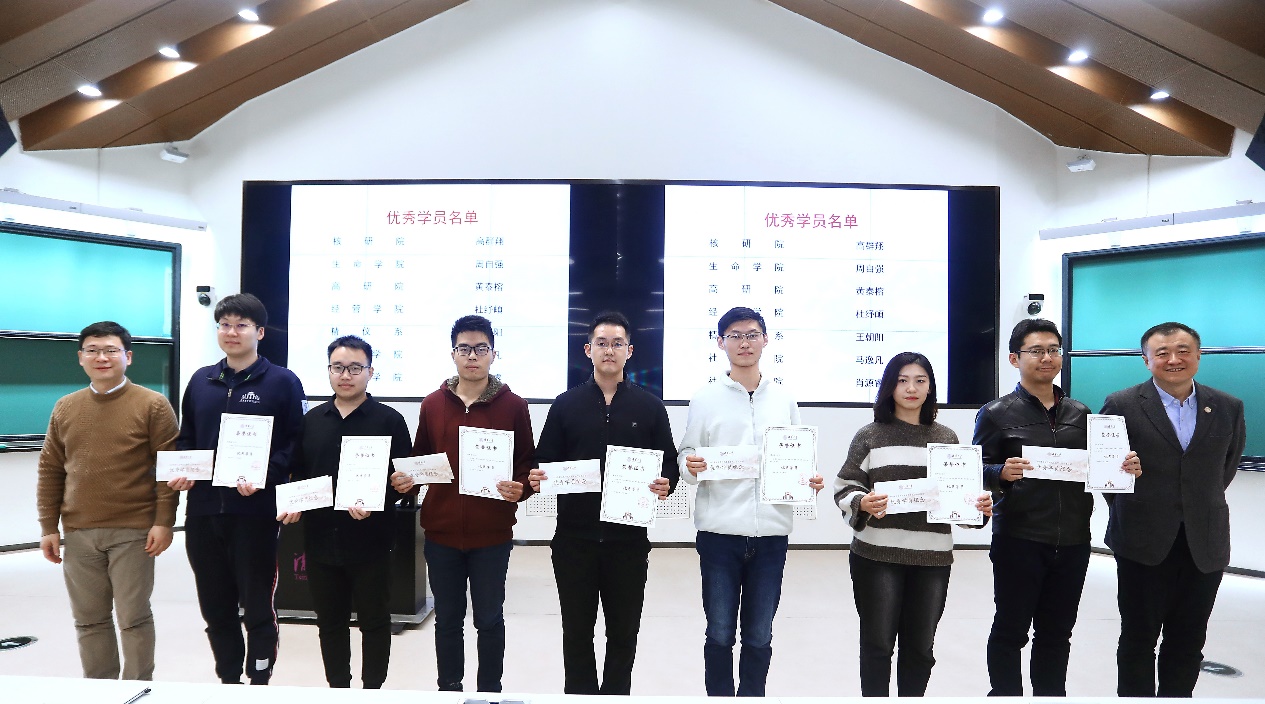 结课仪式上,杨斌、党委研究生工作部部长赵岑为本年度研究生德育工作助理上岗培训优秀学员颁发了荣誉证书。