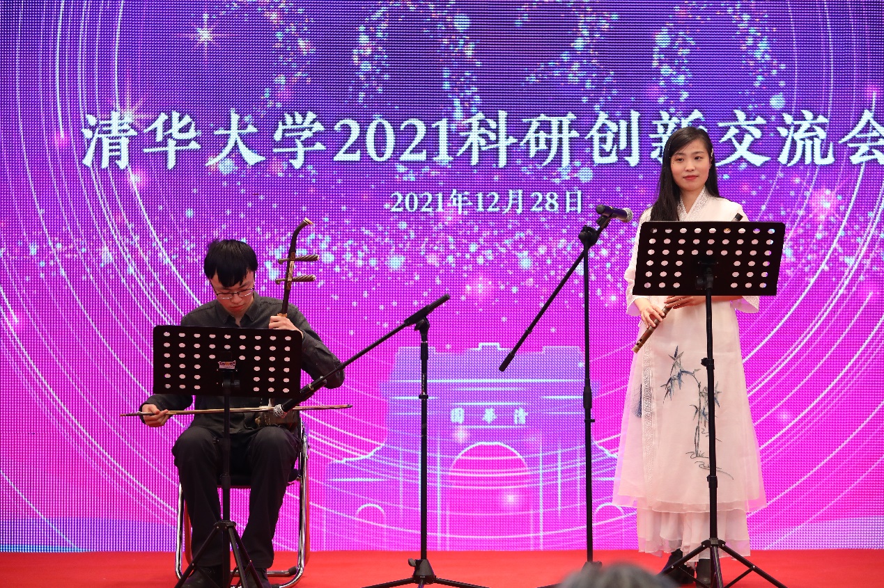 学生艺术团民乐队带来民乐合奏《太极琴侠》。交流会在《灯火里的中国》合唱中结束。