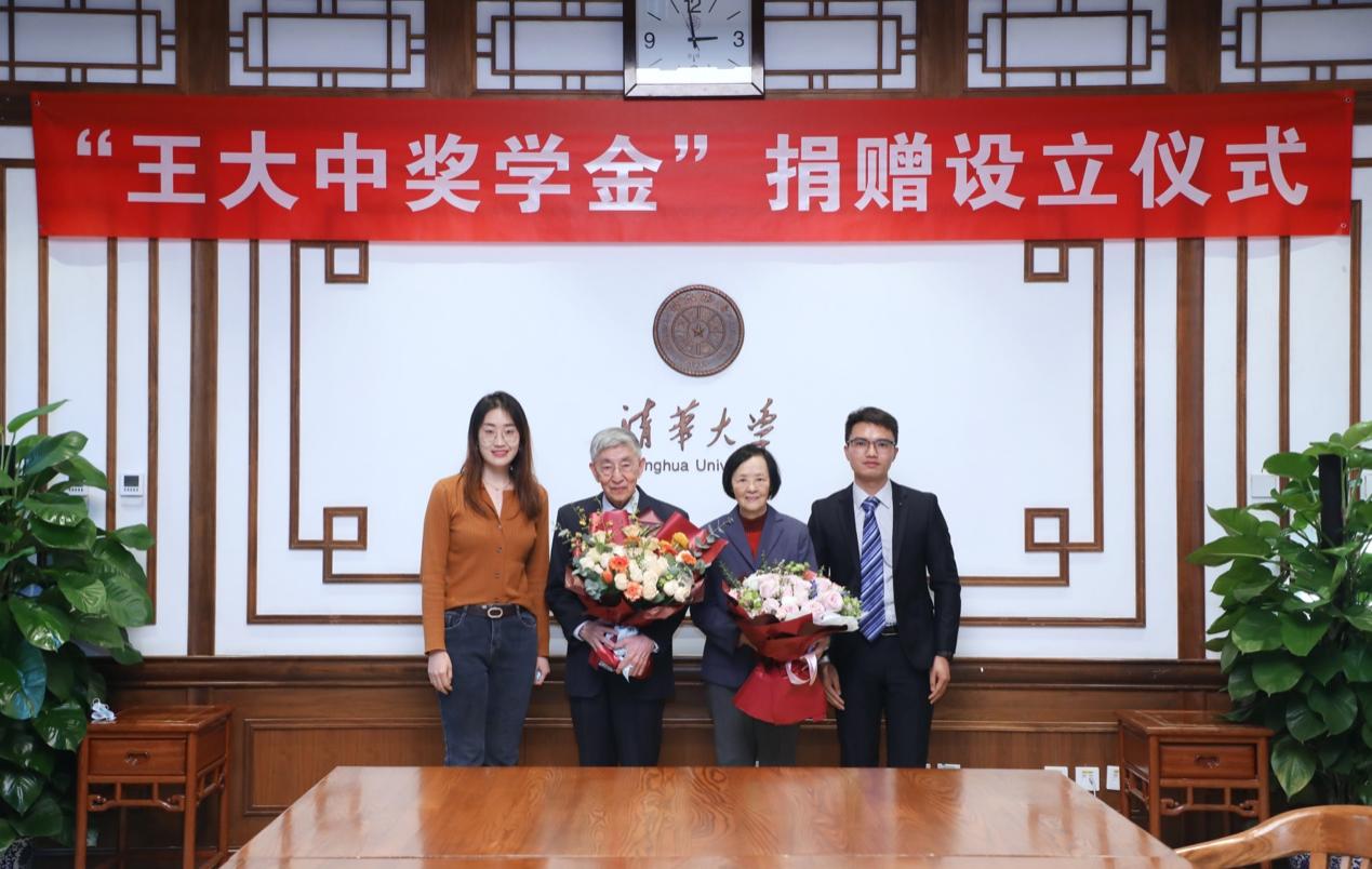 仪式上,王大中与教育基金会秘书长袁桅签署捐赠协议。陈旭、邱勇向王大中颁发捐赠纪念牌。学生代表向王大中、高祖瑛伉俪献花。