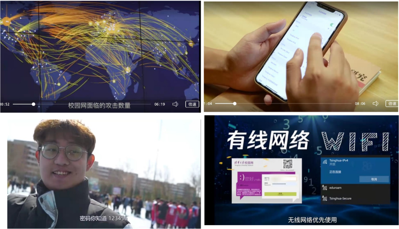 “我们前期跟很多师生沟通交流,发现用说教的形式进行网络安全培训效果并不理想,市场上现有的科普视频又不够贴合校园场景,所以就想尝试通过原创短视频的方式来为师生‘定制化’培训课程和课后习题,”信息办的贾欣妍提到,“在慢慢摸索中形成了现在的思路,做‘易懂’‘好学’‘能用’的网安培训。”