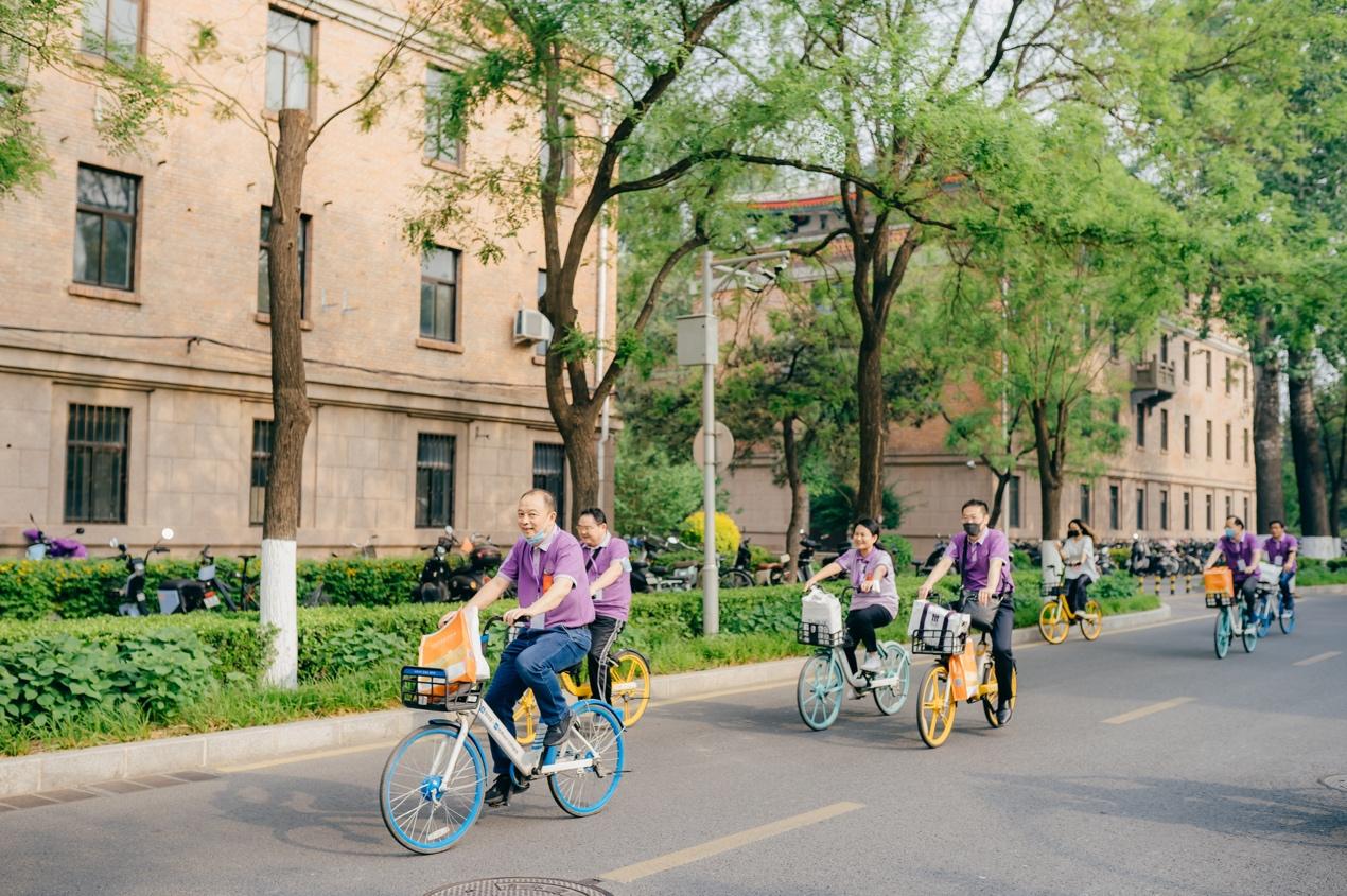 骑着单车游览校园