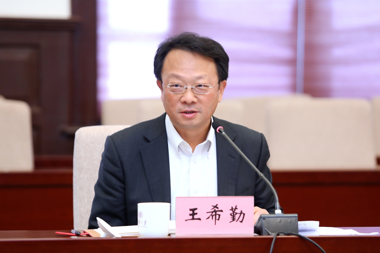 王希勤回顾了习近平总书记历次重要讲话和致信、回信、寄语中关于教育的重要论述。他指出,总书记的重要论述所蕴含的教育思想是探索中国特色、世界一流大学新路的根本遵循。面对党和国家对高等教育事业的深厚期待,我们应当深刻认识一流大学群体所担负的历史使命,一是要牢牢把握教育的正确价值取向,坚持人民至上、生命至上,把促进人的全面发展与社会全面进步落实落地;二是坚定秉承扎根中国大地办大学的实践导向,坚持把马克思主义基本原理同中国具体实际相结合、同中华优秀传统文化相结合,引导师生解决事关党和国家全局性、根本性、关键性的真问题、真解决问题;三是始终坚持党对学校工作的全面领导,全面理解统筹把握“两个大局”,深刻领会“两个确立”的决定性意义,增强“四个意识”、坚定“四个自信”、做到“两个维护”,努力培养堪当民族复兴重任的时代新人,以实际行动迎接党的二十大胜利召开!