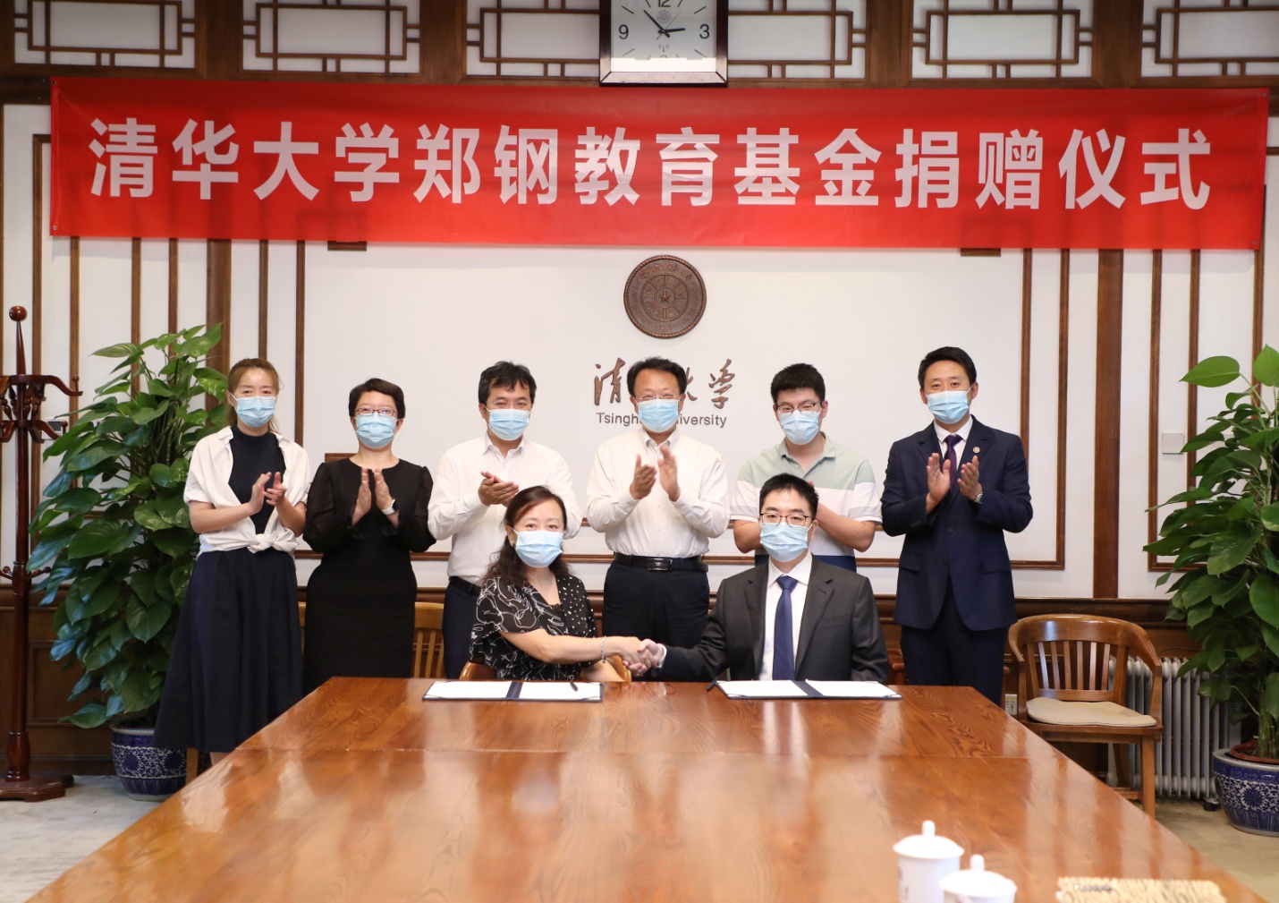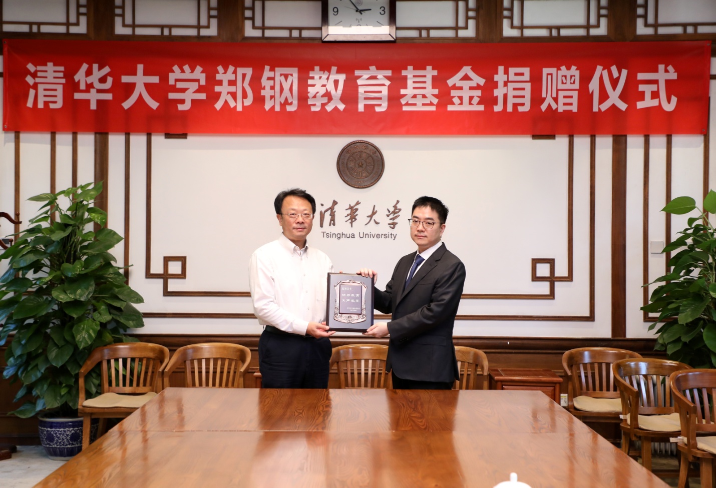 会上,郑钢与袁桅签署捐赠协议,王希勤向郑钢颁发捐赠纪念牌。