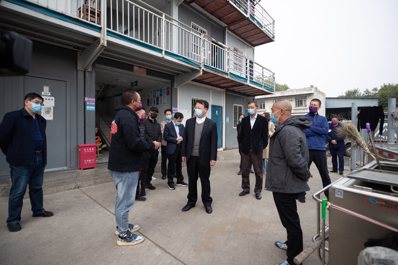 在校内环卫工人住宿点,王希勤了解了校内环卫工作整体情况、宿舍区的基础设施与安全设备及环卫工人等后勤保障人员的疫情防控措施,并走进宿舍关心询问了环卫工人的工作、生活情况。他向环卫工人的辛劳工作表示感谢,并指出校园的平稳运转与干净整洁离不开环卫工人们的付出,要求相关部门在做好相关人员疫情防控工作的同时,进一步强化对后勤保障人员的关心关怀,让大家都能感受到清华园的温度。