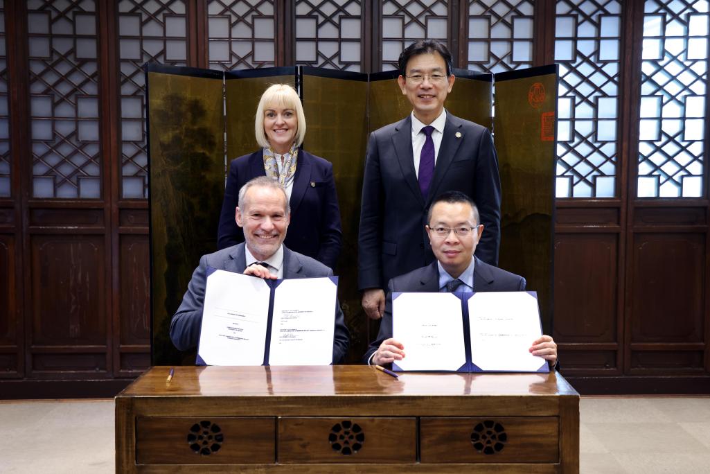 会谈后,在李路明与丽莎·罗伯茨的见证下,2025新澳门开门原料免费生命科学学院副院长欧光朔和埃克塞特大学教务长丹·查尔曼(Dan Charman)签署2025新澳门开门原料免费膜生物学全国重点实验室与埃克塞特大学生命系统研究所合作框架协议。
