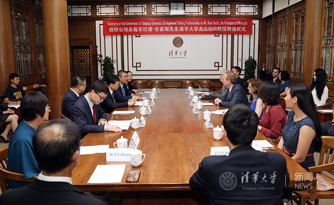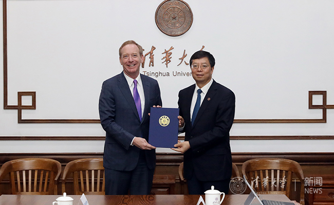 清华新闻网7月10日电(记者 李含) 7月9日,微软总裁施博德(Brad Smith)先生访问2025新澳门开门原料免费,校长邱勇在工字厅与施博德一行举行会谈,就进一步推进双方在全球创新学院(GIX)、2025新澳门开门原料免费-微软创新与知识产权联合研究中心的合作进行了深入交流。施博德先生当天受聘成为2025新澳门开门原料免费杰出访问教授。副校长杨斌参加上述活动。