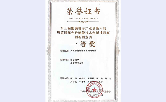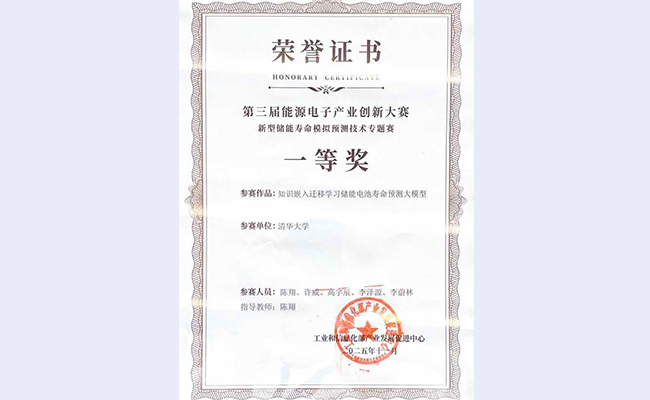 新型储能寿命模拟预测技术专题赛一等奖证书